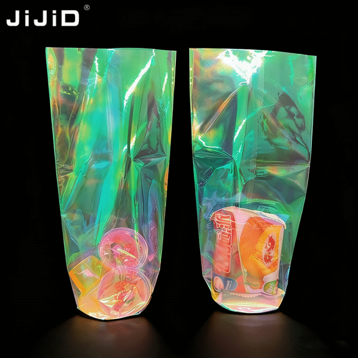 حقيبة JIJID BOPP ثلاثية الأبعاد شفافة بالليزر مستديرة/كتلة/مسطحة القاع | مخبز واضح & كيس تغليف الوجبات الخفيفة للخبز, ملفات تعريف الارتباط, حلوى & تغليف الهدايا