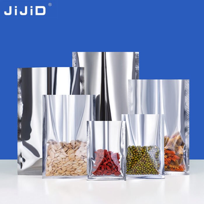 JiJiD – sacs thermoscellés personnalisés, feuille d'aluminium, fenêtre transparente, joint sur trois côtés, résistant à l'humidité, Surface imprimée par gravure, stockage des aliments