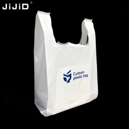JIJID Custom Bags with logo Restaurant Plastic Shopping Bag Side Gusset T-shirt Bag Custom Business Bag