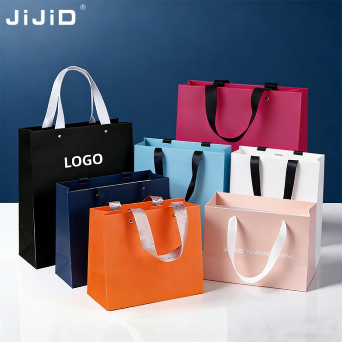Presenting the JIJID Eco-Friendly Custom Paper Shopping Bags – where sustainability meets sophistication. Designed for discerning brands, this isn’t just a bag; it’s a mobile billboard and a tangible expression of your commitment to quality and the environment. Crafted from robust paper and adorned with your custom design, it transforms every purchase into a luxurious, gift-like experience.
