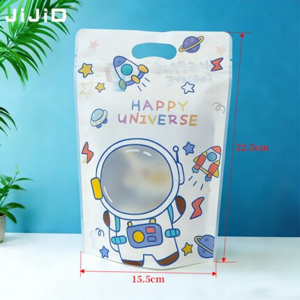 Cartoon Astronaut Stand-Up Food Zipper Bipper Bags – Cute Space Design, Self-Standing, Plastic Storage Pouches for Snacks