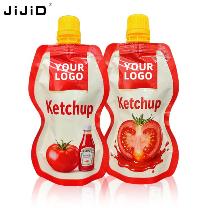 Crafted from multi-layer PET/PE laminates, our Custom spout pouch guarantees excellent barrier properties against moisture, кислород, и загрязняющие вещества. This extends the shelf life of contents like sauces, повязки, напитки, и жидкие ингредиенты. The precision-fit spout accommodates high-speed filling lines, minimizing spillage and maximizing throughput. Each spout features tamper-evident caps to ensure product integrity from factory to consumer.