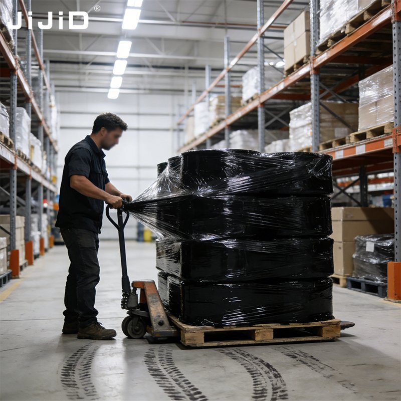 This hand-grade stretch wrap delivers consistent cling on both sides, silent unwind, and excellent memory – ensuring your pallet loads remain tight and stable. Whether you are wrapping warehouse cartons, 工业零件, or export pallets, this black stretch film adds an extra layer of security and professionalism.